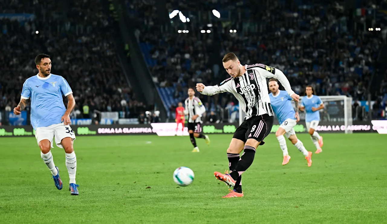 È sempre la Juventus a gestire la partita ma anche la Lazio si rende pericolosa con il tiro di Guendouzi respinto in qualche modo dalla difesa bianconera. A dieci minuti dal termine della prima frazione è Koopmeiners a inventarsi una grande giocata in verticale per il taglio di David che tenta lo scavetto ma Provedel chiude lo specchio della porta; specchio della porta che non trova invece Vlahovic cinque minuti più tardi servito in area di rigore da Conceicao.